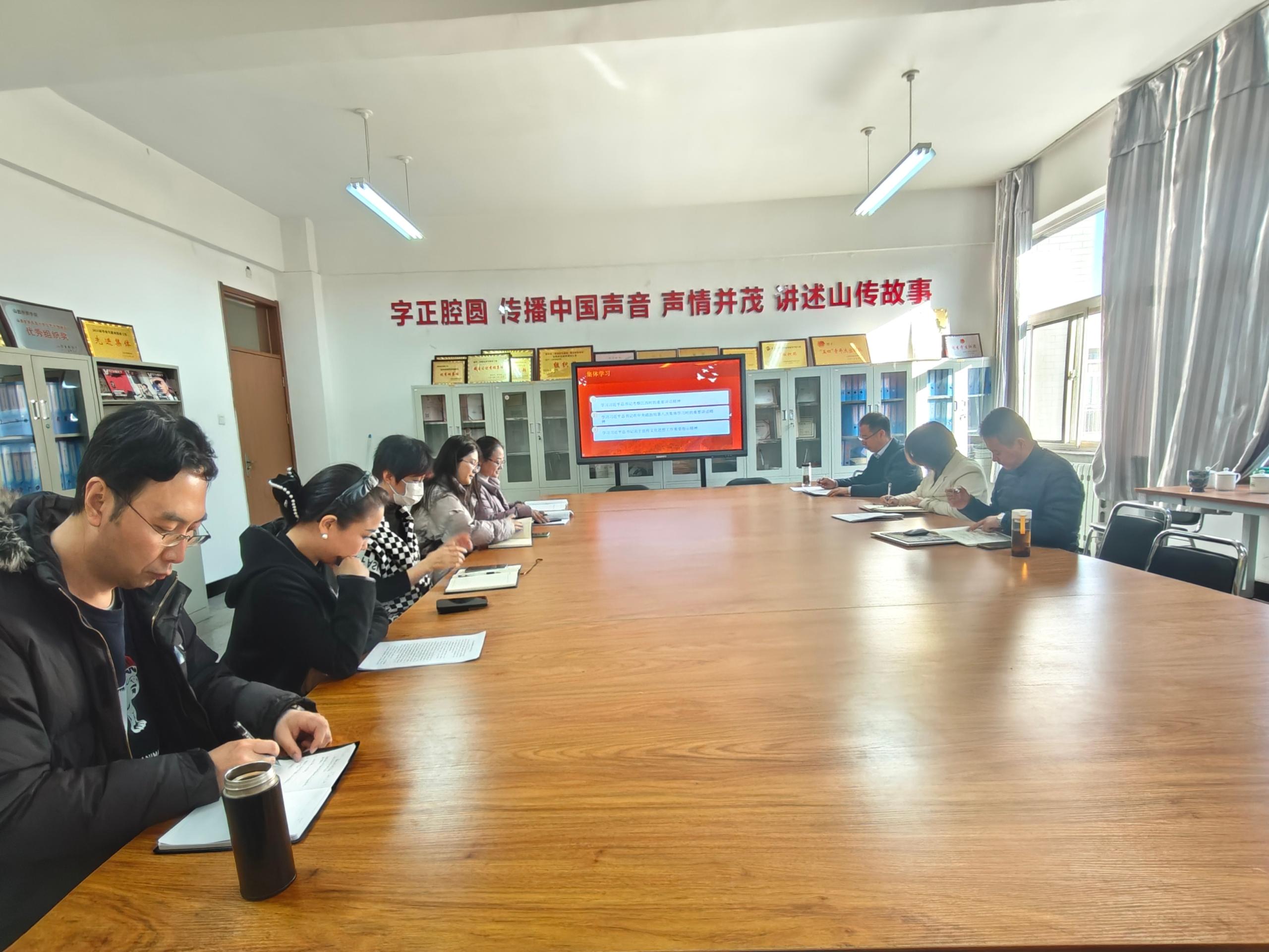 会上,中心组成员集体观看了习近平总书记考察江西和中共中央政治局第八次集体学习的新闻报道,学习了习近平总书记的重要讲话精神;党总支书记王晓燕重点围绕“七个着力”等内容,领学了习近平总书记关于宣传文化思想工作的重要指示精神。王晓燕作了“学习习近平文化思想、建好主流舆论阵地”的发言交流,与会人员围绕学院舆论阵地的功能发挥、板块设置、栏目内容等深入研讨。