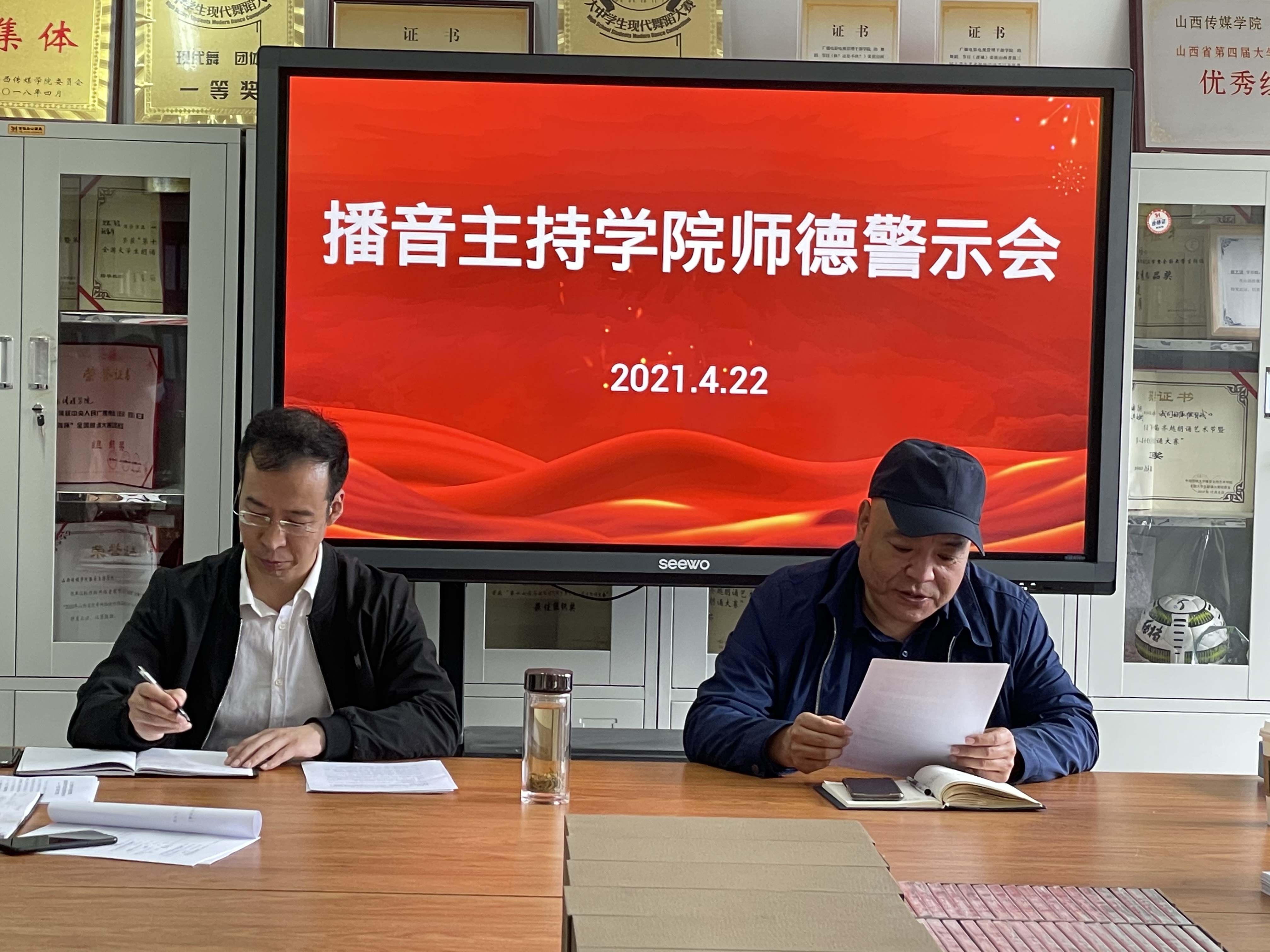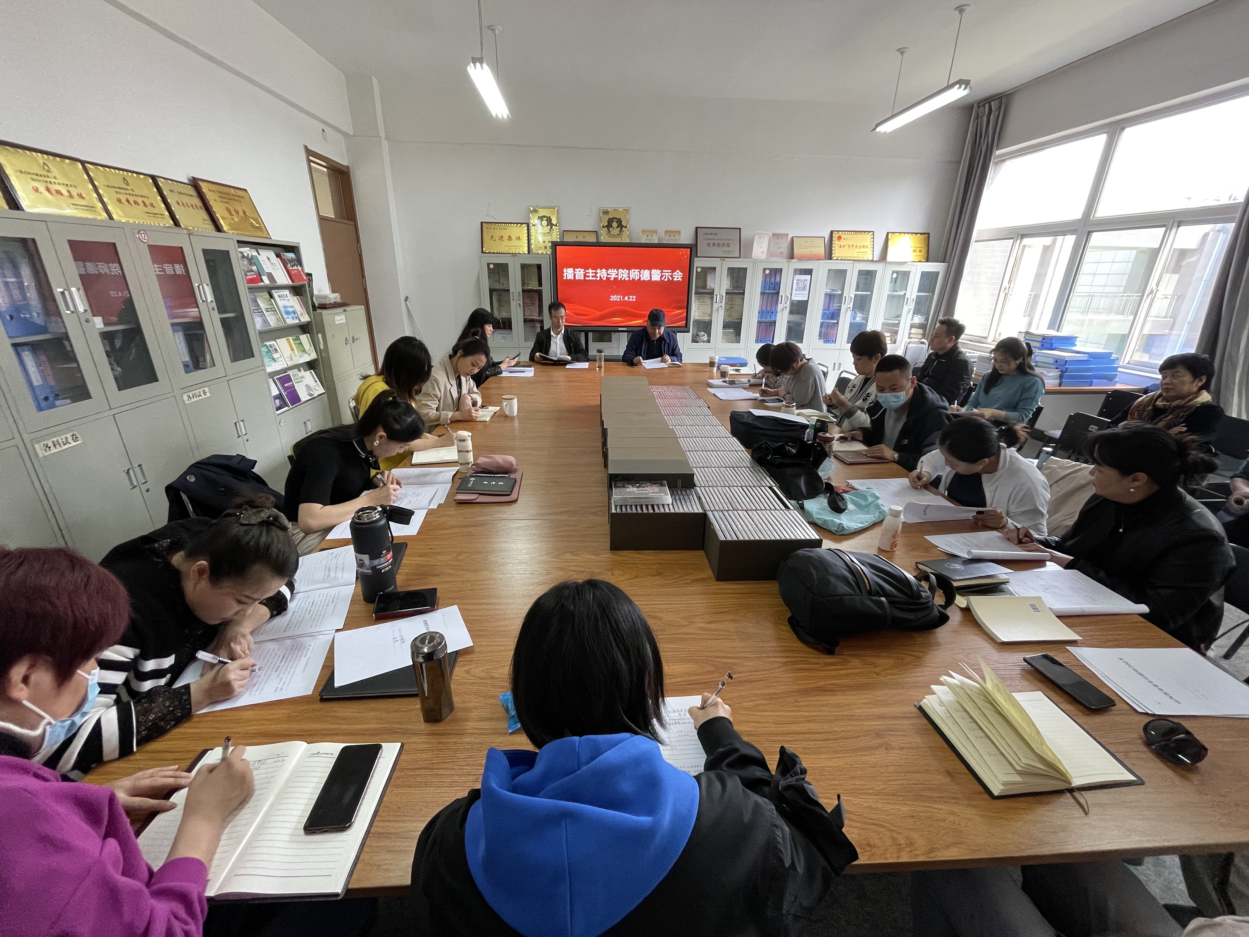 为深入贯彻习近平新时代中国特色社会主义思想和党的十九大精神,深入贯彻落实全国教育大会精神,扎实推进《中共中央国务院关于全面深化新时代教师队伍建设改革的意见》和《深化新时代教育评价改革总体方案》,进一步加强师德师风建设,4月22日下午,我院召开师德警示会,党政领导班子及全院教师参加会议。