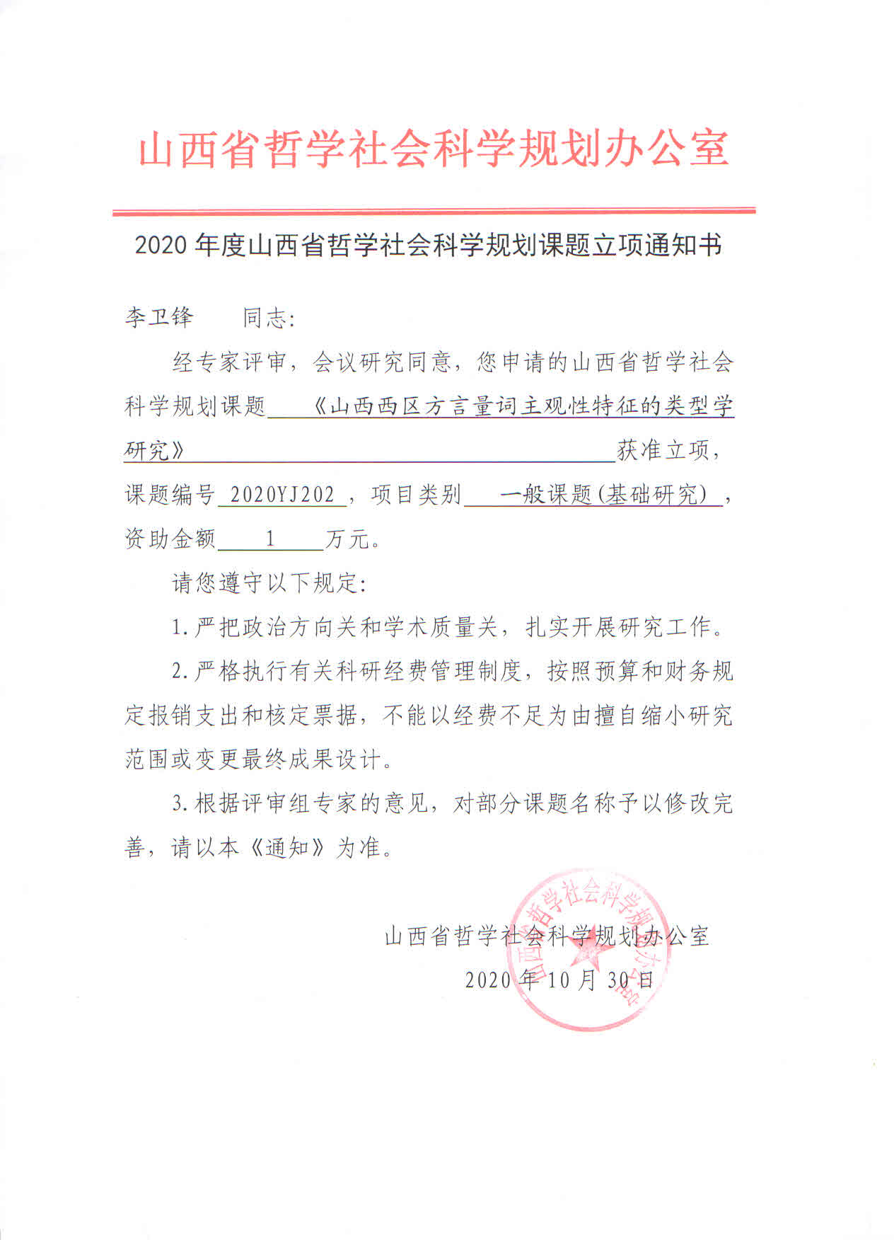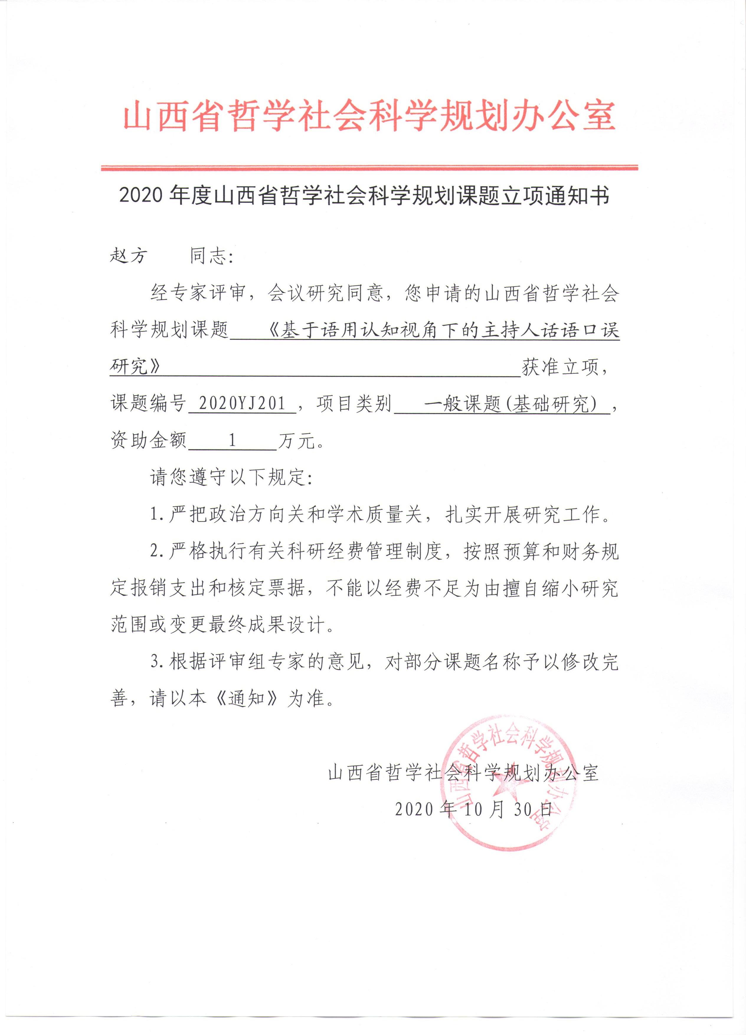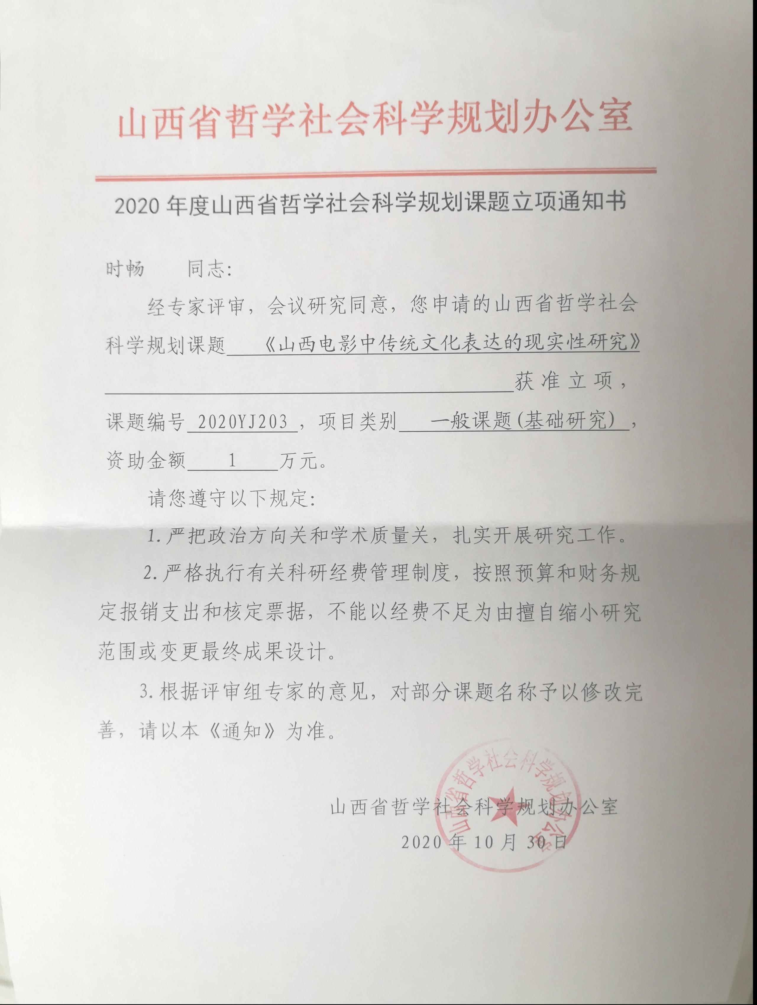 8月中旬,从科研处传来喜讯,2020年度山西省哲学社会科学规划课题立项名单已出,我院6名教师的课题立项。分别是刘嘉老师的《从声音艺术到声音生活:听觉文化视域下的移动音频研究》、赵文丽老师的《山西研学旅游发展研究》、赵方老师的《基于语用认知视角下的主持人话语口误研究》、肖俏老师的《观演、生活与政治空间的关系研究》、时畅老师的《山西电影中传统文化表达的现实性研究》、李卫锋老师的《山西西区方言量词主观性特征的类型学研究》。