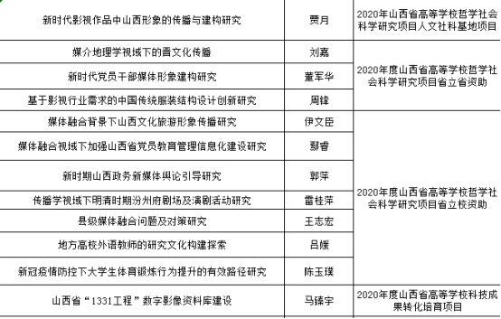 2020年6月,我院刘嘉老师获批山西省高等学校哲学社会科学研究项目《媒介地理学视域下的晋文化传播》。
