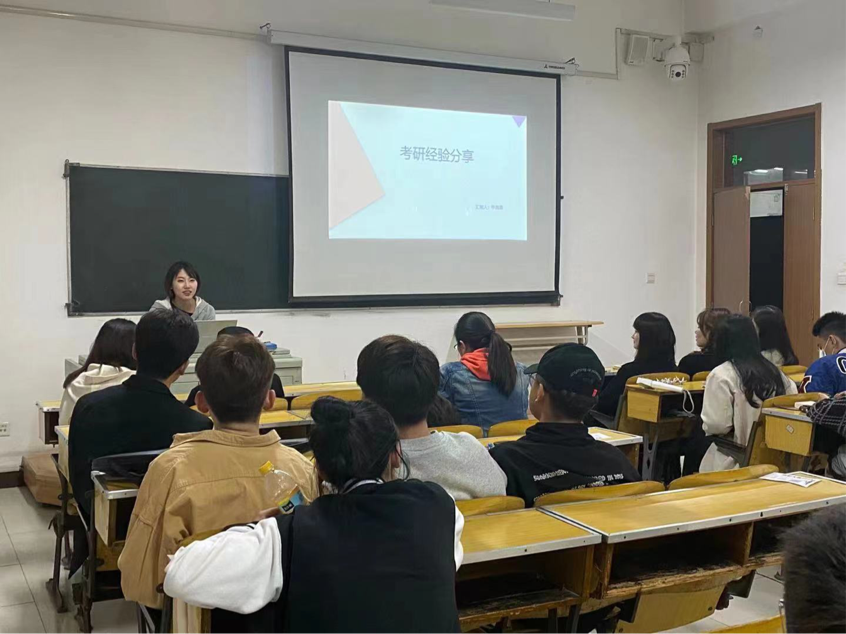 为认真落实党史学习教育“我为群众办实事”实践活动要求,学党史,悟思想,办实事,开新局,增强同学们的考研信心,OK138太阳集团学生会于2021年4月28日下午6时在文博楼A109召开考研经验分享会。王婧惠、平雅敏老师出席本次分享会。徐如玉同学担任主持人。