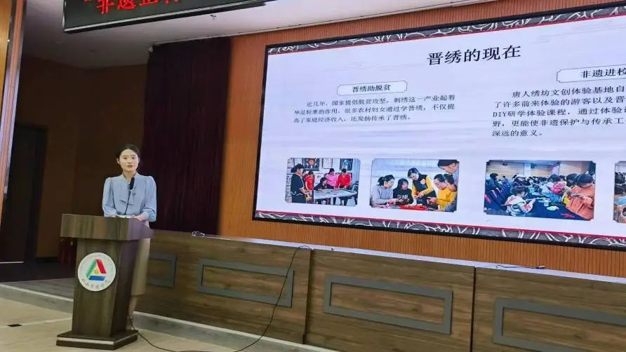 经典的晋剧、华美的晋绣、活灵活现的孝义皮影、太谷饼制作技艺、惟妙惟肖的广灵剪纸、平遥纱阁戏人、榆社霸王鞭等一个个极具山西特色的非遗项目,同学们通过深入挖掘山西非遗的文化内涵,结合图片和视频,展示了项目发展历史、非遗传承故事以及青年对融入现代生活的思考。