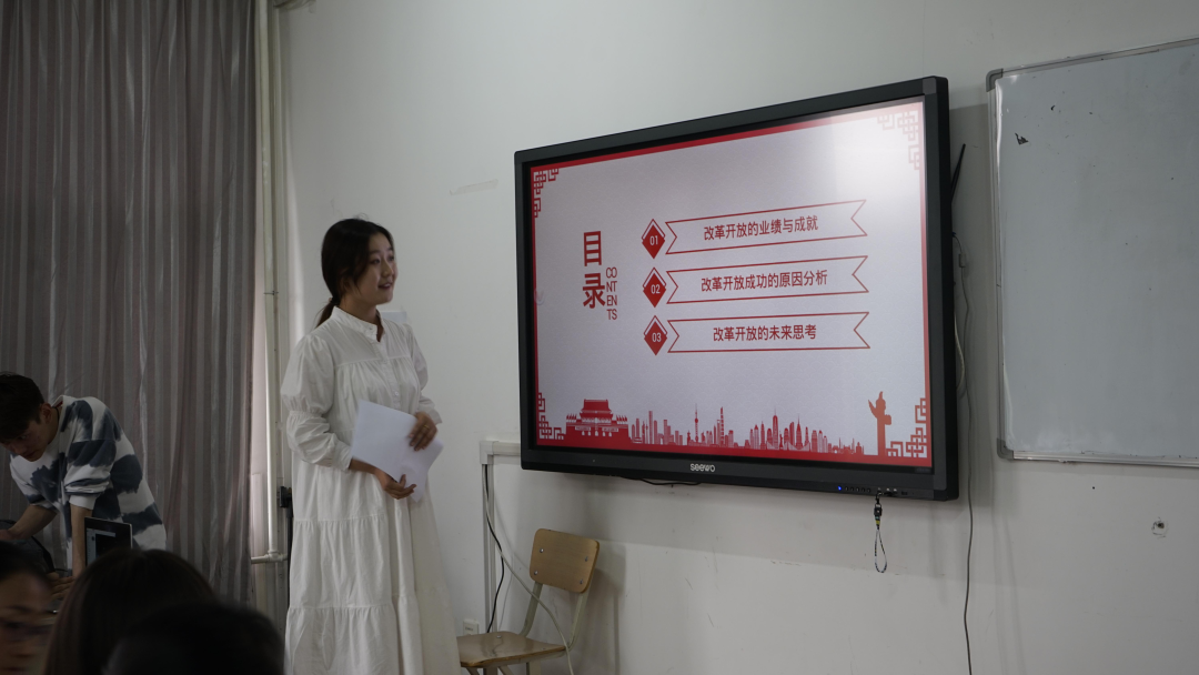 5月13日,我院学生党支部召开了第四次党史专题学习活动,借此机会,对改革开放史进行再学习、再探讨。院党总支副书记王爱华老师、团委副书记王婧惠老师、学生党支部书记靳凤仙老师、学生党支部组织员李杰老师、宣传委员平雅敏老师及全体学生党员共同参会学习。本次学习活动中,张佳琪同学分享了她认识中的我们党领导下的改革开放史。她主要从改革开放的业绩与成就,改革开放成功的原因分析,改革开放的未来思考三个方面来讲述。