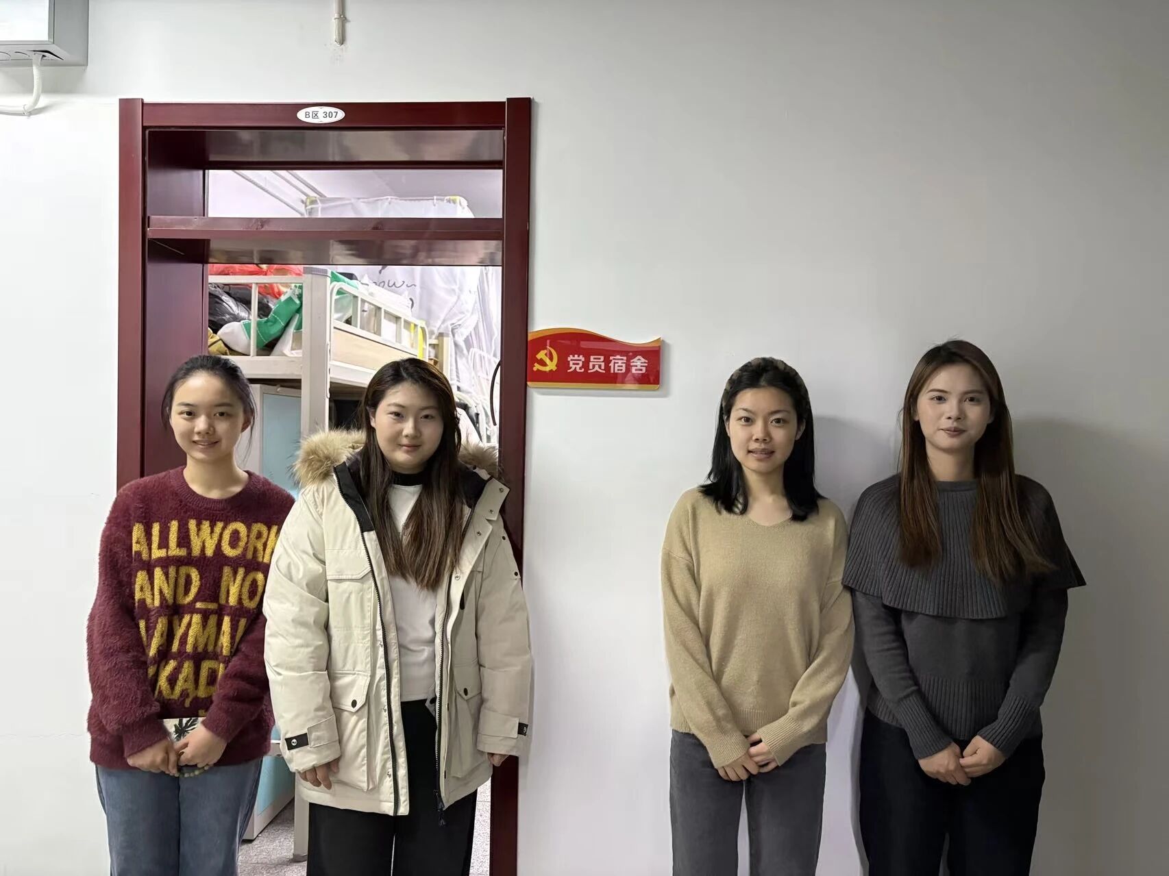 “挂的是牌子,亮的是身份,担的是责任。”学院党总支书记王晓燕、学生党支部书记平雅敏、分团委负责人王婧惠、教学秘书曹睿走进学生党员所在宿舍,为他们悬挂“党员宿舍”标识牌。这不仅仅是一个荣誉的象征,更是一份沉甸甸的公开承诺。它时刻提醒着学生党员:要以更高的标准要求自己,在宿舍安全、内务卫生、学习风气、人际关系等方面做好表率,主动接受同学们的监督。