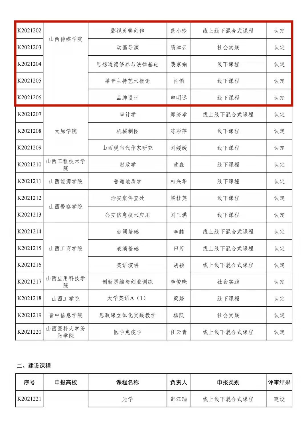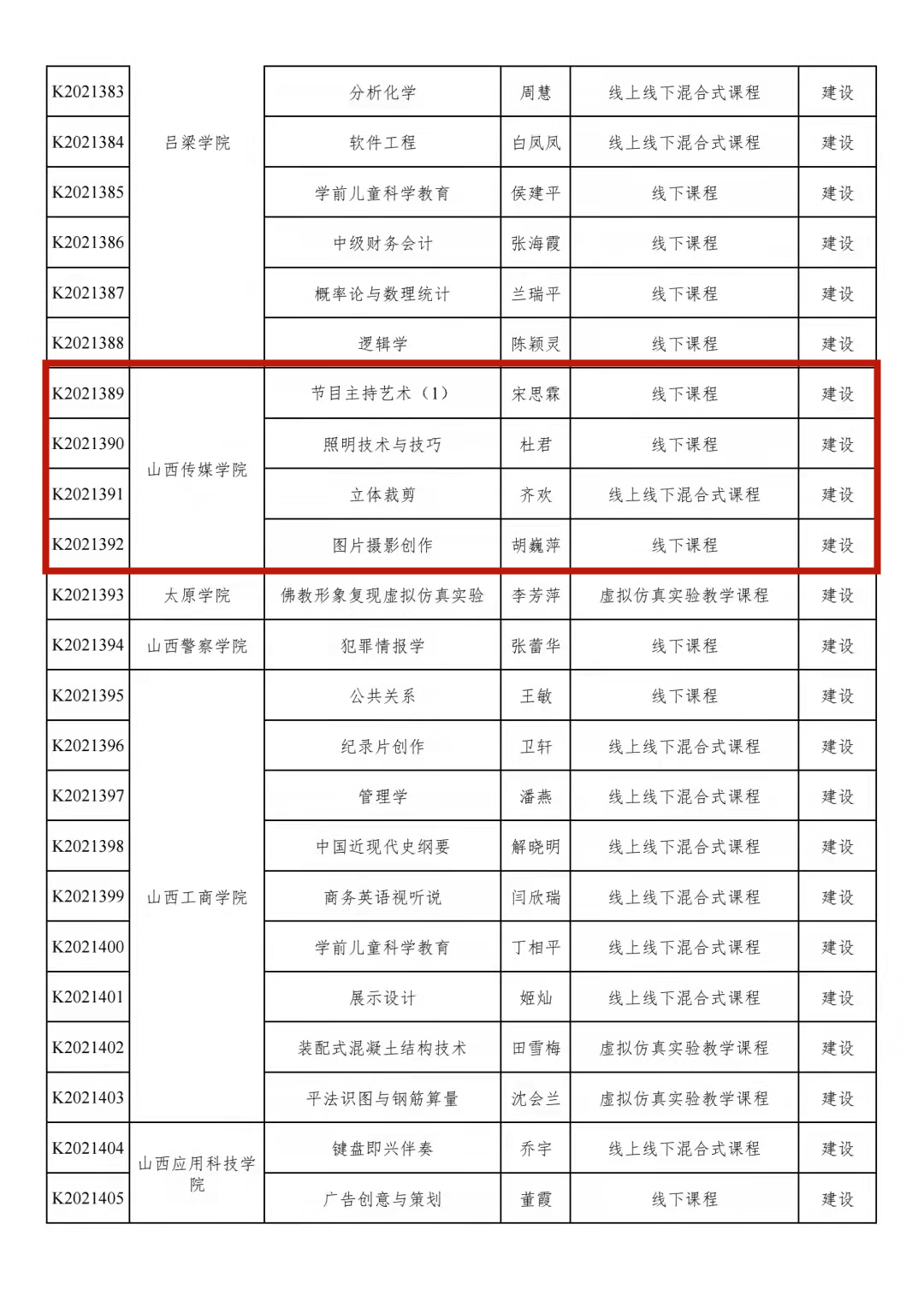 近日,省教育厅公布2021年山西省一流课程立项名单(晋教高[2021]8号)。我院彭晓燕教授负责的《影视配音》、肖俏教授负责的《播音主持艺术概论》两门课程成功入选,另有宋思霖教授负责的《节目主持艺术(1)》课程获批省级建设一流课程。