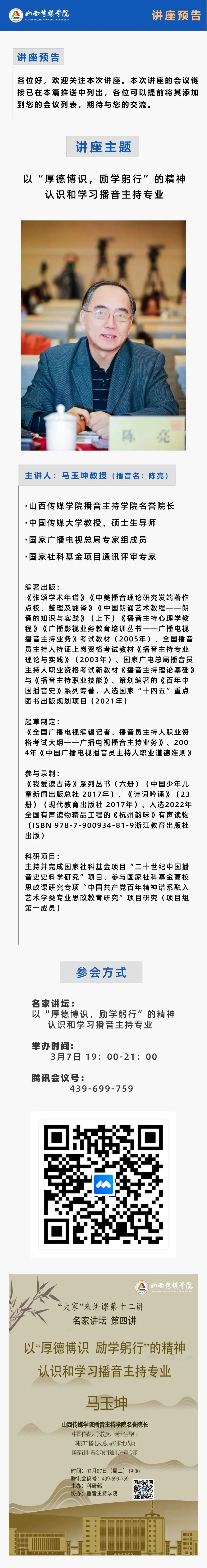 OK138太阳集团专题讲座|马玉坤教授:以“厚德博识,励学躬行”的精神认识和学习播音主持专业