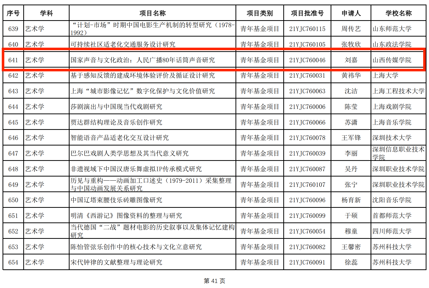 8月19日,教育部社会科学司正式公布了2021年度教育部人文社会科学研究一般项目立项结果。我院刘嘉副教授申报的“国家声音与文化政治:人民广播80年话筒声音研究”获得青年基金项目资助。