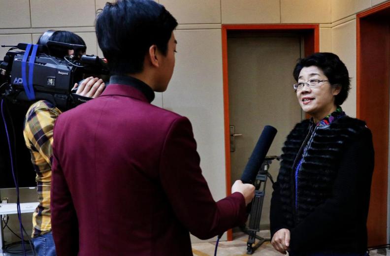 大赛评委山西广播电视台首席主播苏云丽老师赛前接受直播记者采访