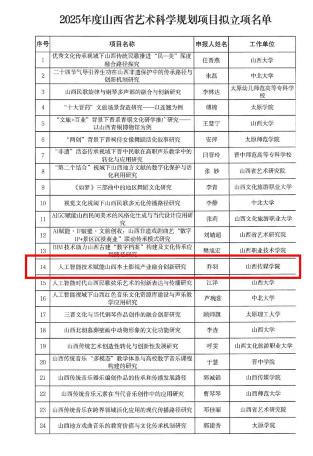 近日,省级科研项目立项名单相继公布,我院三位教师在2025年度山西省高等学校哲学社会科学研究项目(思想政治教育专项)与山西省艺术科学规划项目中喜获佳绩:靳凤仙入选思政专项项目,乔羽、王雨桐成功入选艺术科学规划项目,为学院科研工作再添硕果。