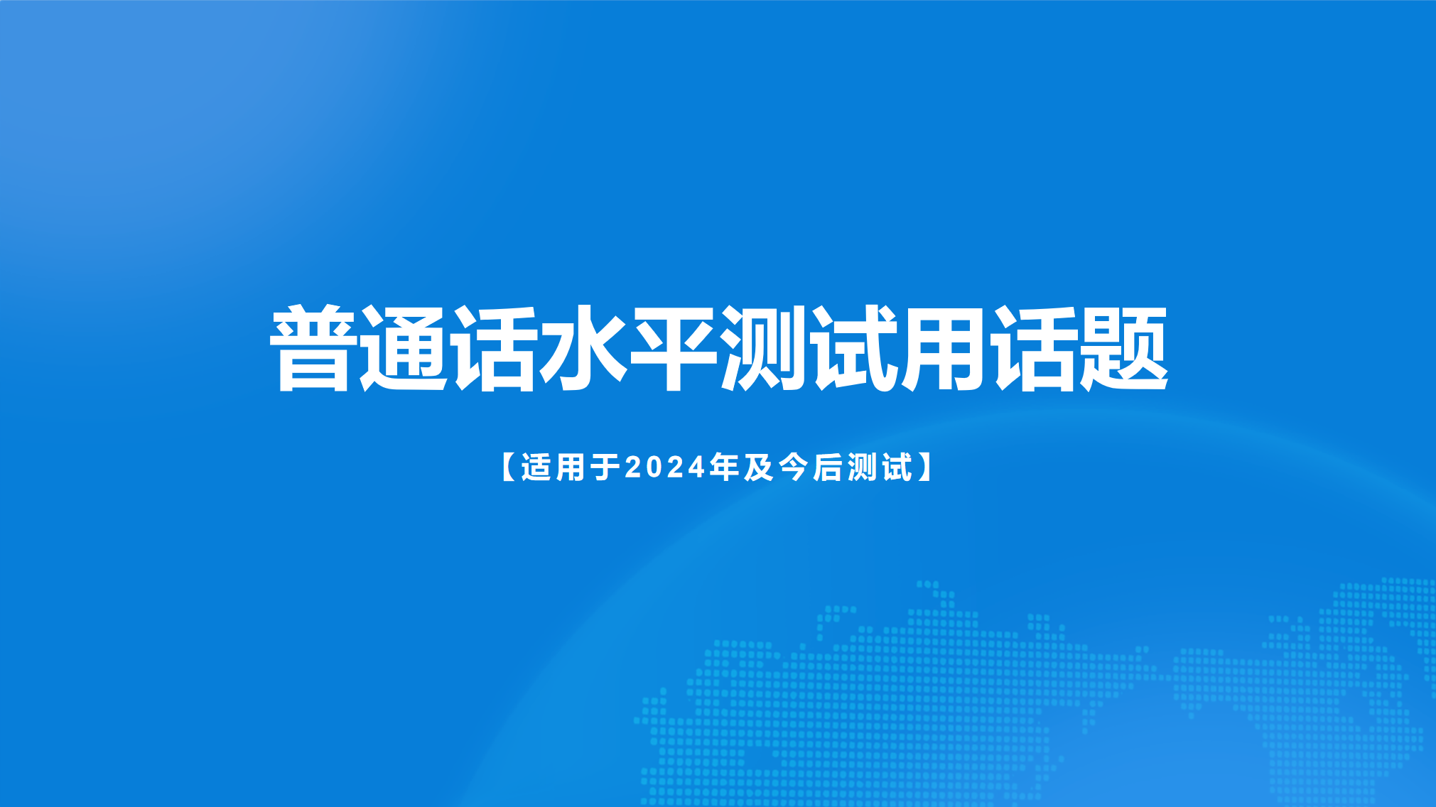 特别说明:话题仅是对话题范围的规定,并不规定话题的具体内容。测试时,系统会随机提供两个话题,考生选择其中一个话题答题。考生一定要提前准备话题,设计好自己的话题结构,开头、展开、收尾,在3分钟的时间内说一段完整的话即可,切勿写稿子、背稿子!