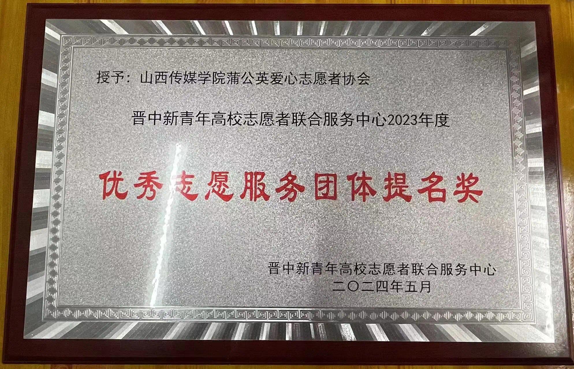 为深入学习贯彻落实党的二十大精神,进一步汇聚志愿力量、弘扬志愿服务精神,引导更多青年用实际行动书写新时代雷锋故事,为建设全省全方位推动高质量发展先行区奉献青春志愿力量,共青团晋中市委、晋中市文明办、晋中市总工会、晋中市红十字会指导,晋中新青年高校志愿者联合服务中心、东瑞创意街于2024年5月25日联合开展了第八届晋中新青年高校志愿者联合服务中心志愿者公益晚会 暨“东瑞创意街杯”大学生志愿者晚会。我院蒲公英爱心志愿者协会荣获优秀志愿服务精神团体提名奖,协会成员陈昕凌获优秀志愿者、成员田若然获优秀志愿者提名奖。