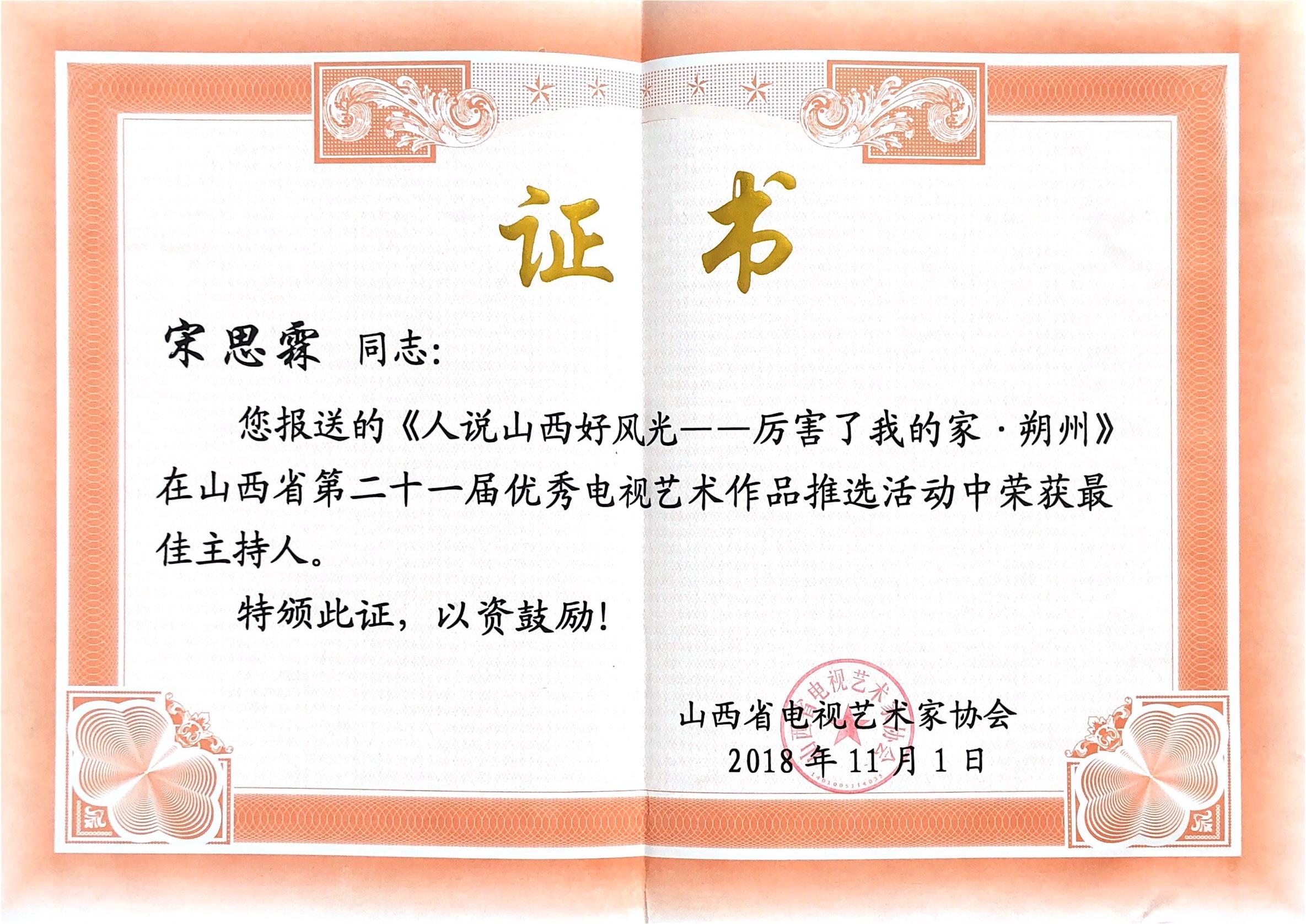 我院老师在山西省第二十一届优秀电影艺术作品推选活动中荣获”最佳主持人“