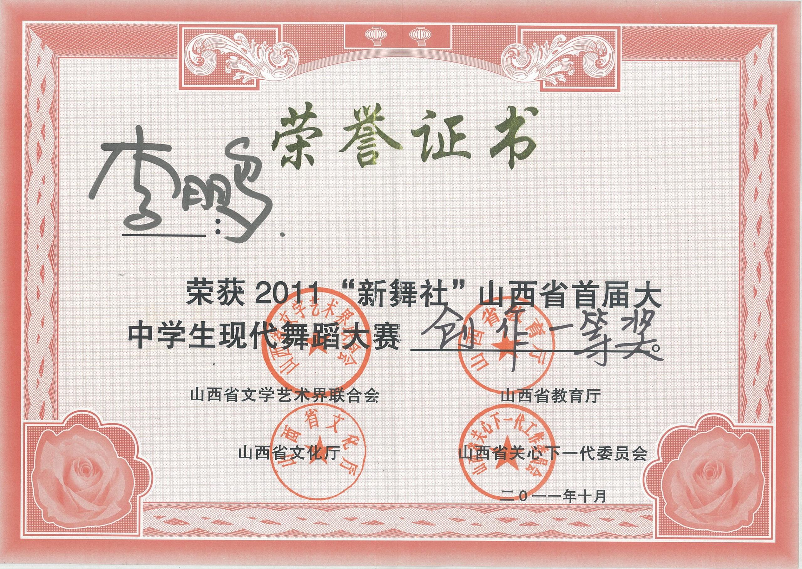 我院老师在山西省首届大中学生现代舞蹈大赛获一等奖