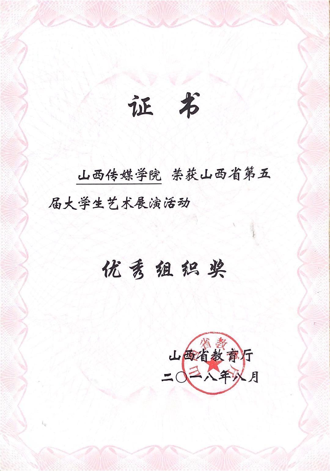 我院荣获山西省第五届大学生艺术展演“优秀组织奖”