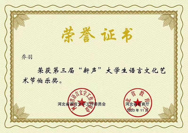 我院学生在第三届新声大学生语言文化艺术节中荣获“伯乐奖”