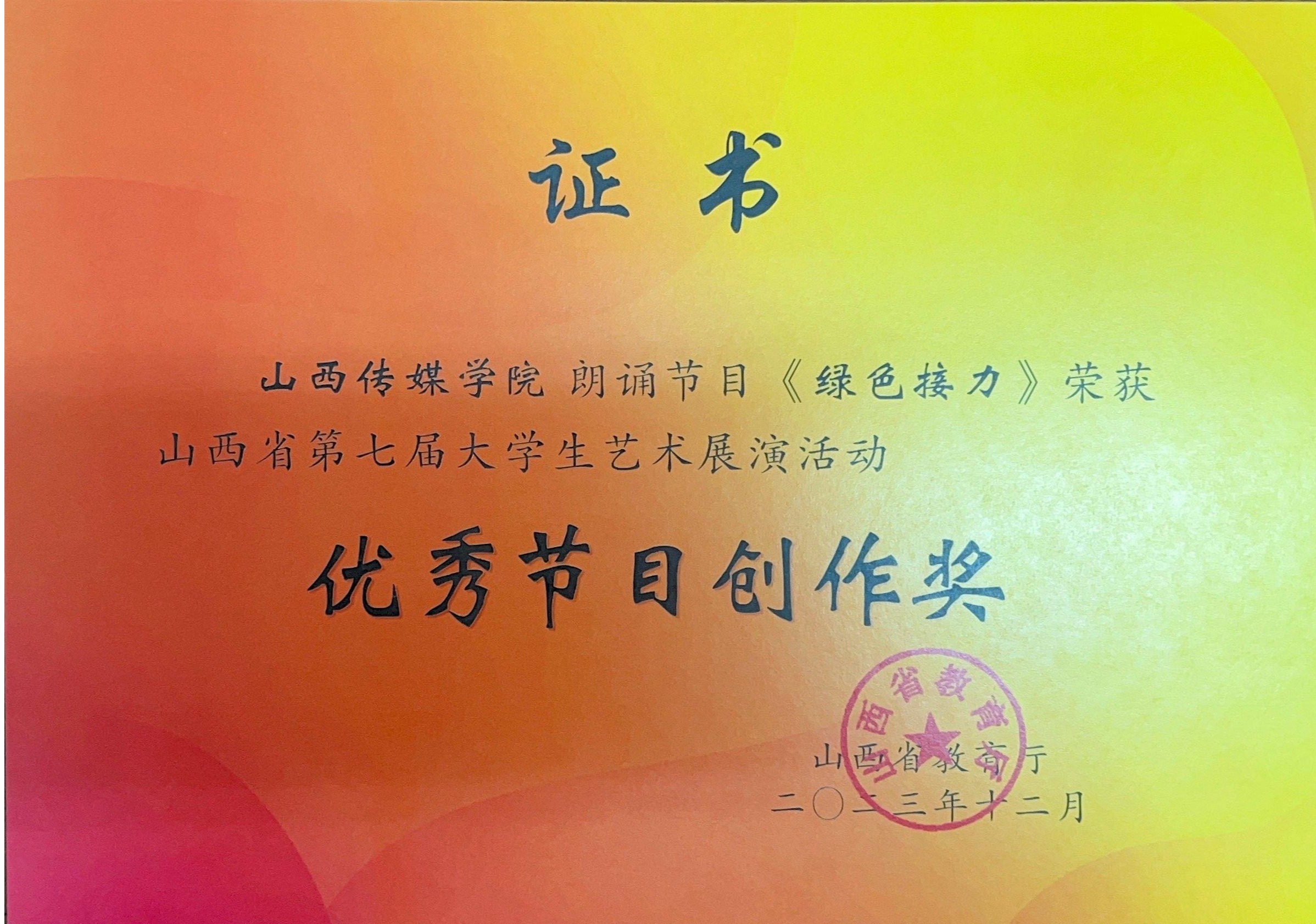我院朗诵节目《绿色接力》荣获山西省第七届大学生艺术展演活动“优秀节目创作奖”