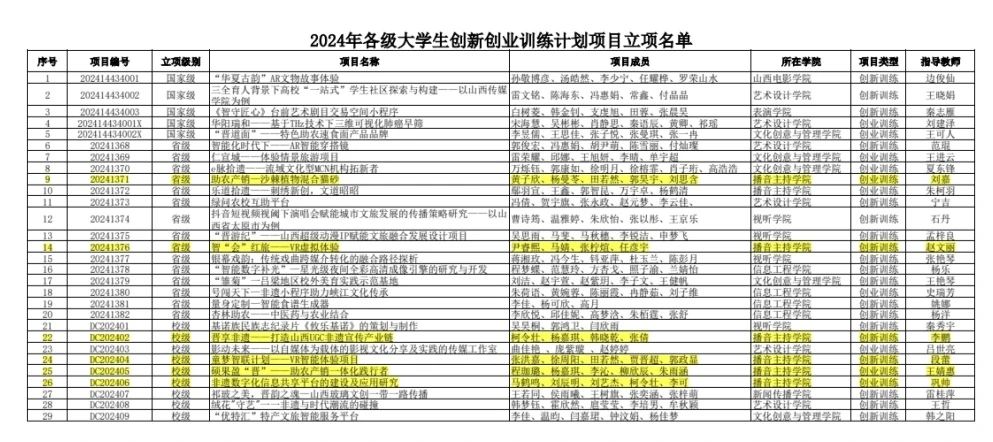 2024年各级大学生创新创业训练计划 我院立项项目共计六个