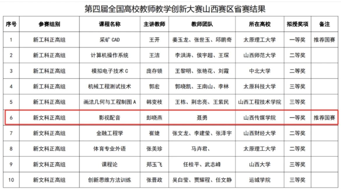 我院教师团队在第四届全国高校教师教学创新大赛山西赛区中分别荣获一等奖、二等奖