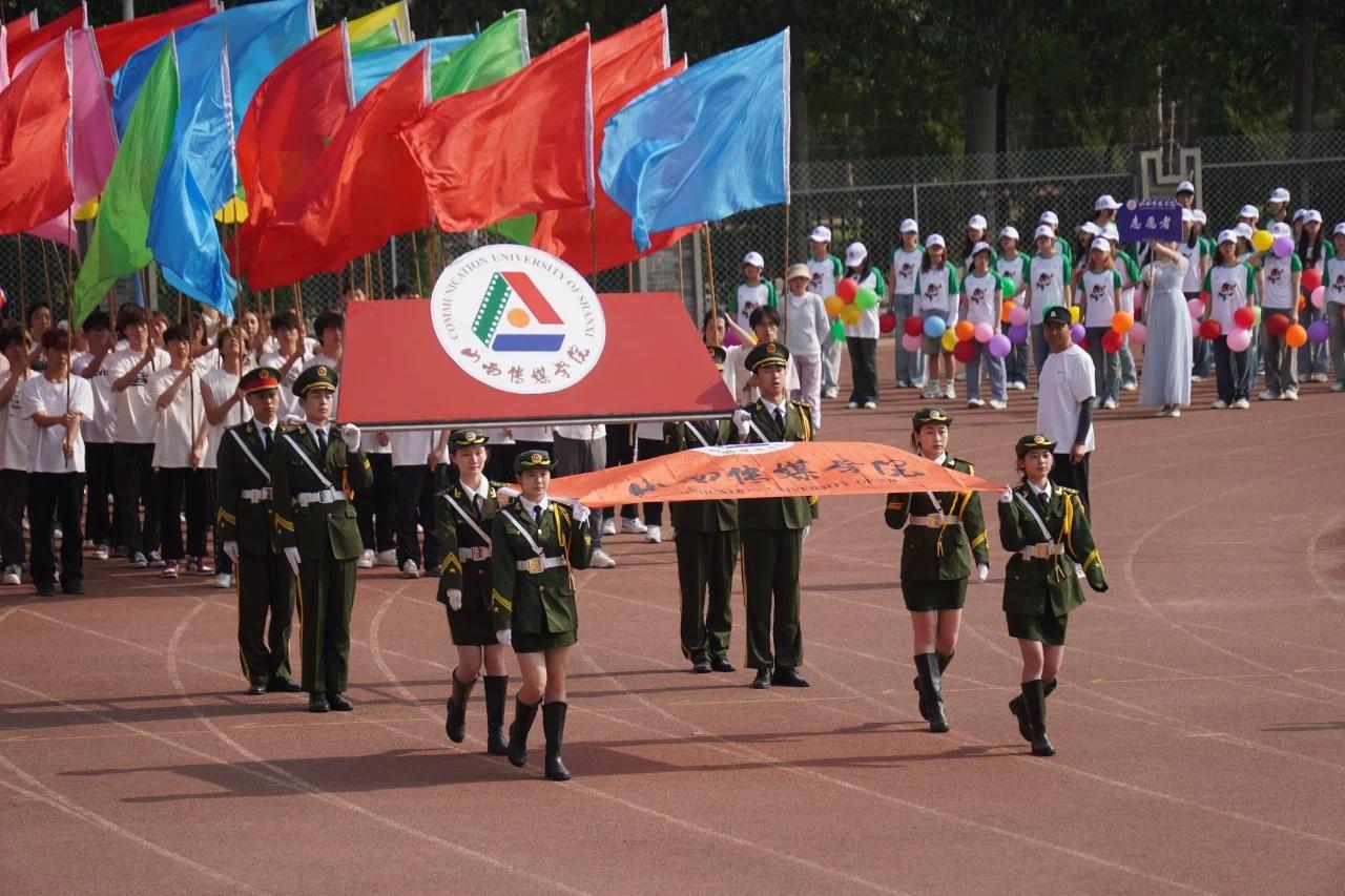 开幕式上国旗护卫队昂首阔步、身姿挺拔,各个学院代表方阵大放异彩,将体育运动与专业特色相结合,展现出山传学子朝气蓬勃、积极向上的精神面貌。