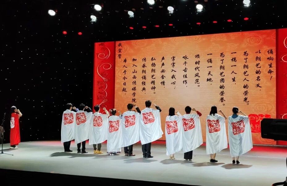 ok138太阳集团朗诵艺术团是OK138太阳集团有声语言艺术教学实践活动的重要平台。因朗诵的艺术特性,朗艺团又是我院推广普通话、展现汉语魅力、传承文化经典的“主力部队”。“声声必含情,字字入我心”,秉持着这份初心与坚守,“朗艺人”们用最好的状态为大家呈现了优秀的作品,以实际行动传承朗艺精神,诵响生命。