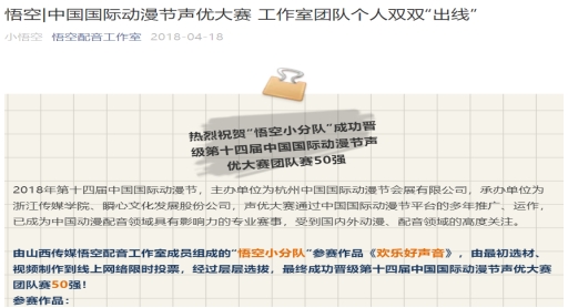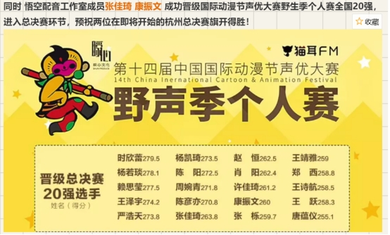 二.悟空配音工作室成员参加中国国际动漫节团队赛和个人赛获