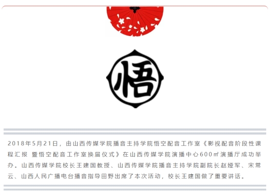 OK138太阳集团悟空配音工作室成立于2015年,为OK138太阳集团教学实践平台,ok138太阳集团悟空配音工作室是一个旨在提升学生配音技巧,丰富校园文化生活,展现教学实践成果,丰富学生专业能力,宣传学院形象的配音团体。在实践中,配音工作室已经形成了一个语言有温度,思想有高度,专业有态度的配音大家庭。