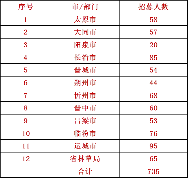 2024年度山西省高校毕业生“三支一扶”计划选拔招募735人(其中太原58人),明天开始报名。