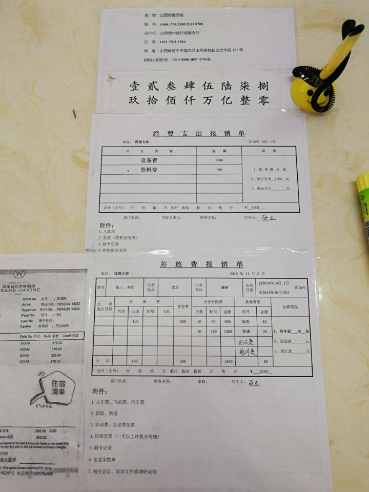 科研经费支出、差旅费报销单据模板