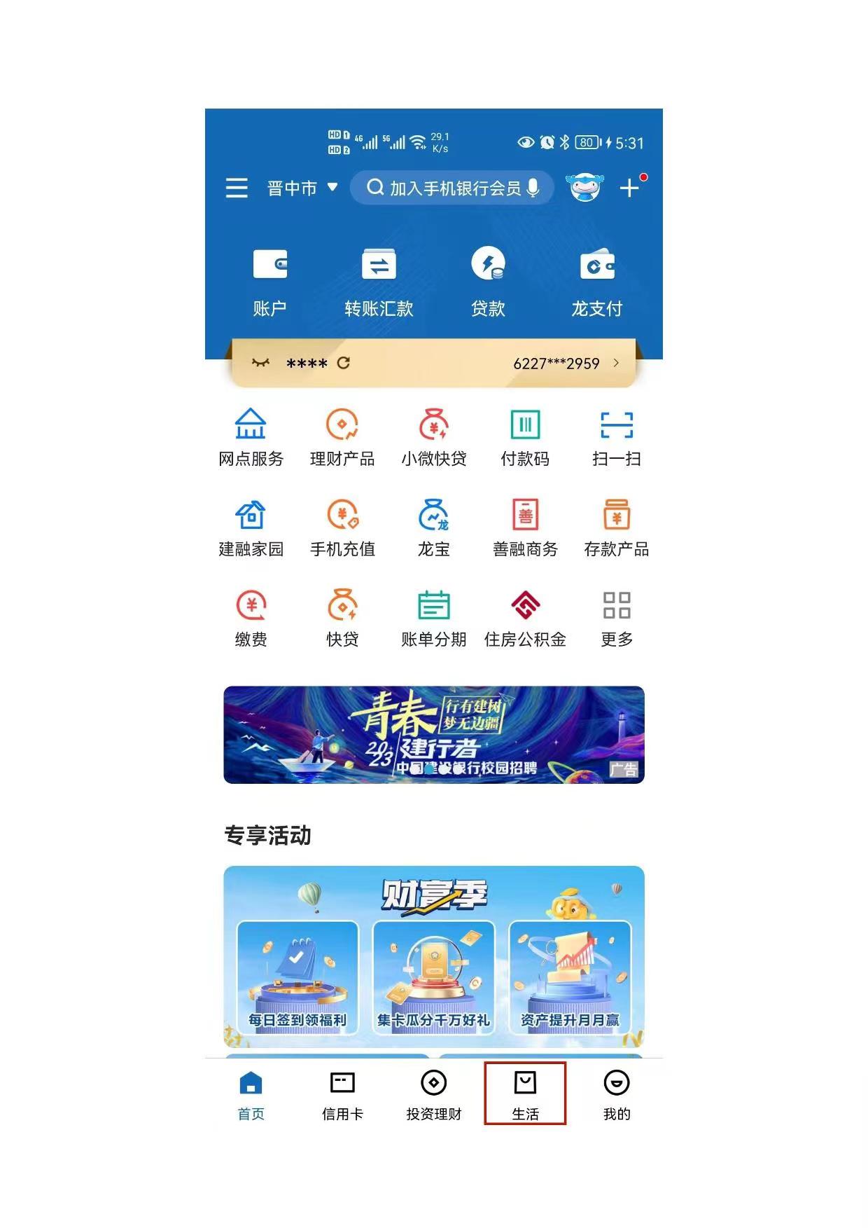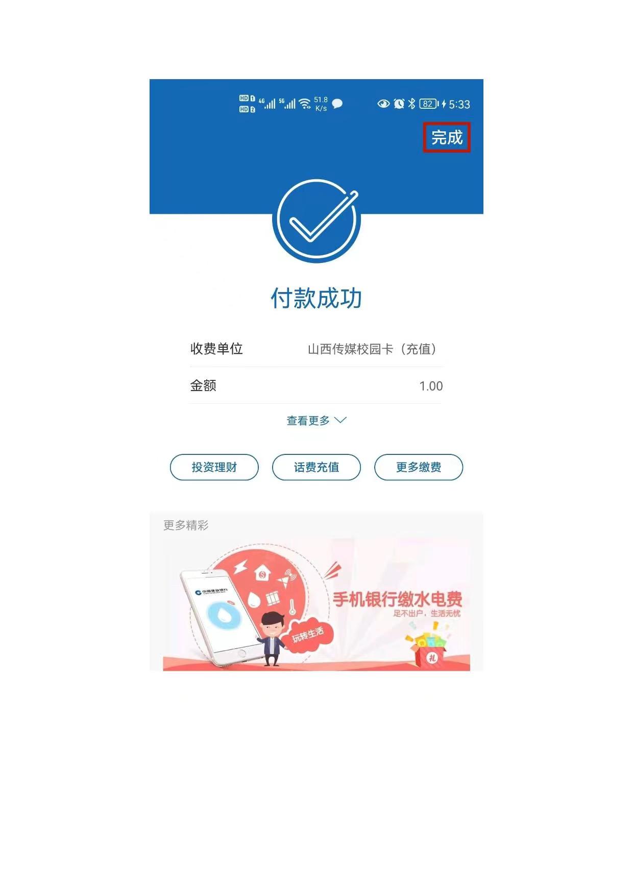请到手机应用市场下载并安装完成“中国建设银行”APP,打开APP,登录成功后,按照本文演示图例中操作步骤,完成校园卡充值。