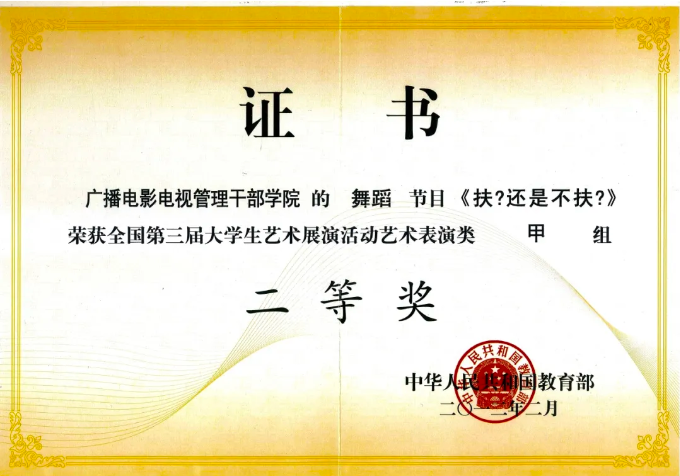 我院吾舞现代舞团原创作品《扶?还是不扶?》曾荣获全国第三届大学生艺术展演活动艺术表演类甲组二等奖。