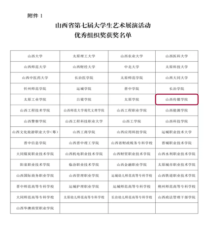 我院荣获山西省第七届大学生艺术展演活动优秀组织奖